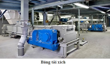Băng tải xích thường được sử dụng khi các vật liệu khối dính như đá, thạch cao, đất sét hoặc than thô được tách ra từ gàu xếp liệu. Đối với các ứng dụng như vậy, AUMUND khuyến nghị sử dụng băng tải xích PKF. Để chiết xuất bụi lọc hoặc chất phụ gia, băng tải xích AUMUND TKF Loại LOUISE thường được sử dụng. Khi máy này vận chuyển vật liệu khối trong một máng kín, sự tác động đến môi trường sẽ được giảm thiểu.