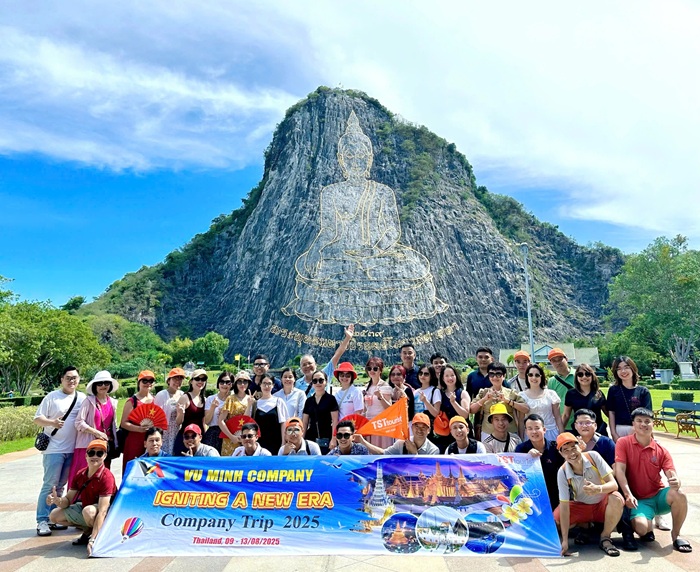 Cũng trong cùng ngày, chúng tôi được tới tham quan Trân Bảo Phật Sơn (Khao Chee Chan), chiêm ngưỡng và trầm trồ hình ảnh Đức Phật Thích Ca Mâu Ni được khắc nổi bằng vàng ròng 24k trên vách núi với chiều cao 118 mét; tham quan Suanthai Pattaya - Khu du lịch thiết kế với kiến trúc truyền thống Thái Lan; đi Chợ nổi 4 miền và trải nghiệm đời sống văn hóa đặc trưng của các vùng miền địa phương Thái Lan với các món ăn đặc sản dân gian, các gian hàng bán quà lưu niệm phong phú.